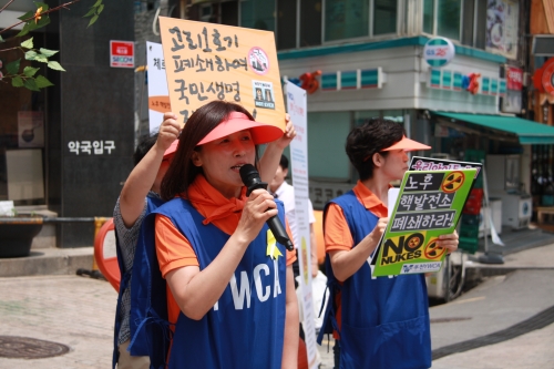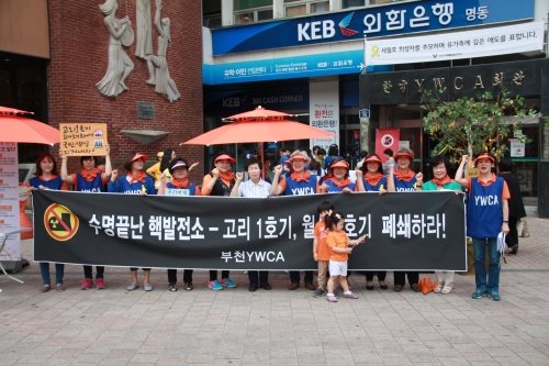 이날 캠페인에서는 전국 최초로 방사능으로부터 안전한 공공급식을 위한 ‘진흥형 조례’를 제정에 크게 이바지한 부천YWCA의 회장과 실무자들, 부천시의원 한혜경 의원 등이 참여한 가운데 세월호 참사 이후 ‘국민의 생명과 안전’을 지키기 위한 ‘수명 끝난 노후 핵발전소 고리1호기, 월성1호기 가동 중지’에 대한 서명에 많은 참여를 이끌어냈다. 노후 핵발전소 폐쇄에 대한 호소문을 읽은 부천YWCA 심명자 회장에 이어 후쿠시마 핵발전소 폭발 이후 방사능 내부 피폭을 막고 아이들에게 안전한 먹거리를 제공하기 위한 방사능안전급식조례를 발의하여 전국최초의 ‘진흥형조례’를 제정한 부천시 한혜경 의원의 시민 호소문도 많은 시민들의 공감을 얻었다.