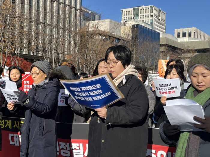 정부 탄생 초기부터 성평등 민주주의 가치 파괴에 앞장서 온 대통령 윤석열은 12월 3일(화) 밤, 헌법적 요건을 갖추지 않고 절차도 무시한 긴급 계엄령을 선포하여 모든 국민들의 기본권을 파괴하겠다는 선언을 하기에 이르렀다.