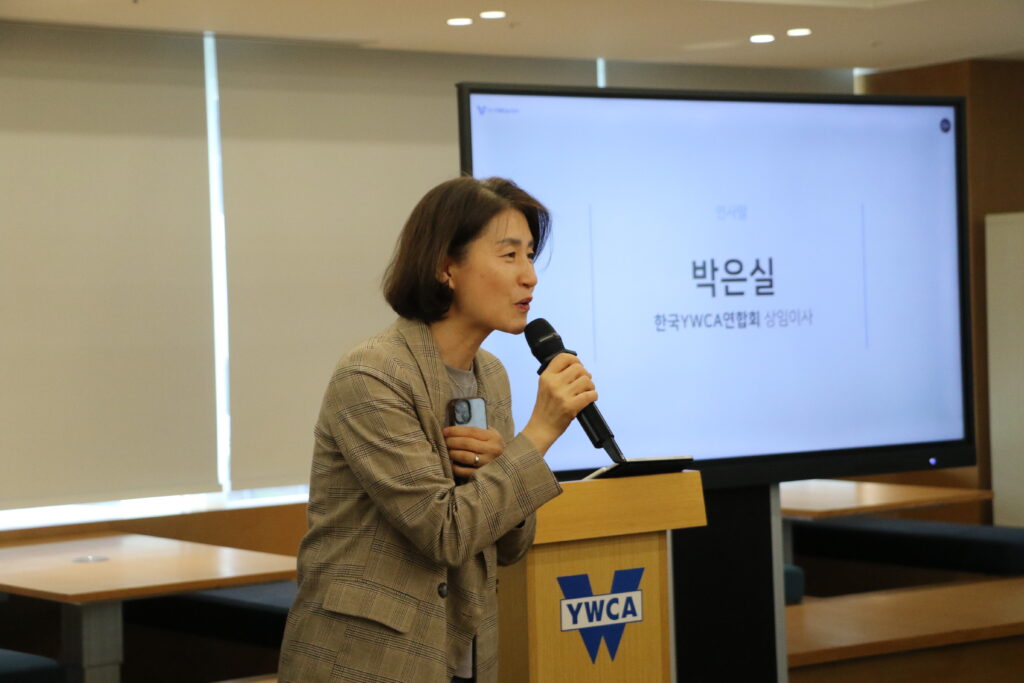 이어 박은실 한국YWCA연합회 상임이사는 교육의 중요성을 이야기하고 YWCA에서 진행하고 있는 교육들을 소개하며 강사들을 환영하고 격려했다.