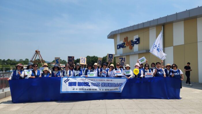 한국YWCA는 해방과 분단 80년, 정전협정 체결 72년을 맞아, 지난 6월 6일(금) 오전 11시 30분 임진각 평화의 종 앞 광장에서 열린 ‘DMZ생명평화순례단과 함께하는 한반도 평화대회’에 함께하였다. 이번 행사는 한반도 평화를 바라는 종교인들과 시민사회가 함께하는 ‘한반도 평화행동’의 일환으로 마련되었다.