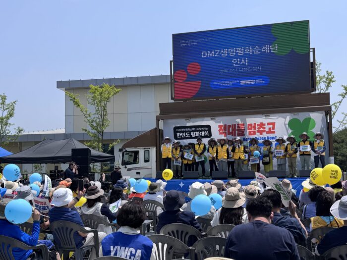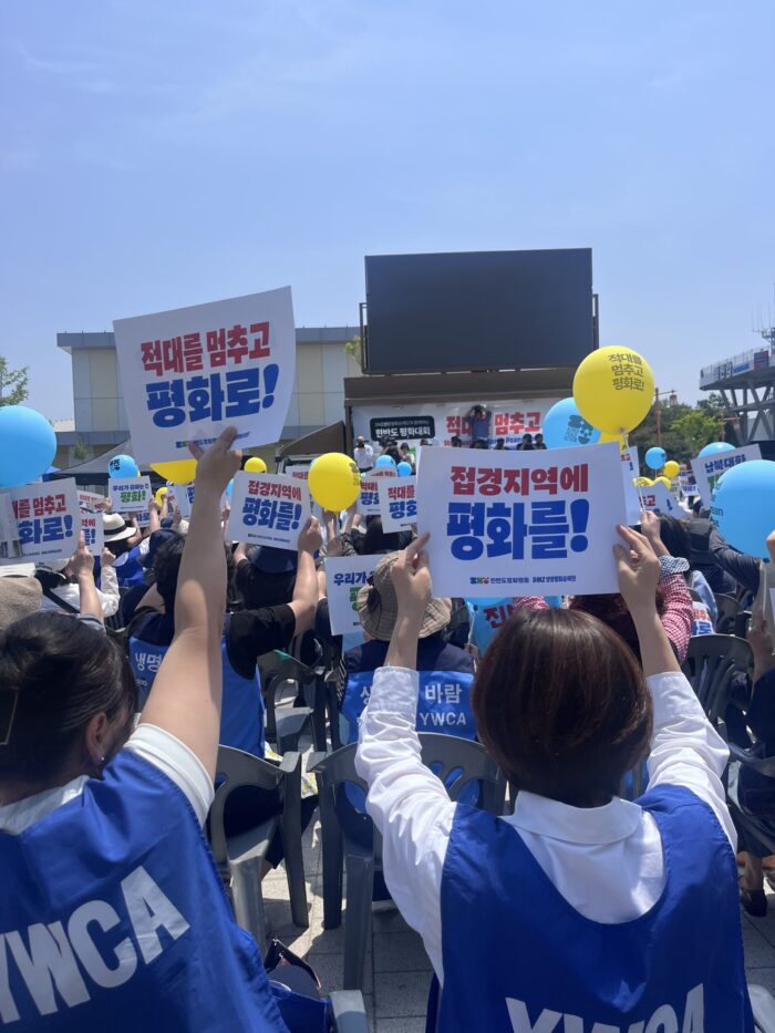 한국YWCA는 한반도평화행동의 공동대표단체로서, 이날 행사의 기획과 진행에 함께했으며, 당일 오전 9시 30분 장산전망대에서 시작된 ‘평화순례’에 이어, 11시 30분부터 열린 ‘한반도 평화대회’에 참여하였다.