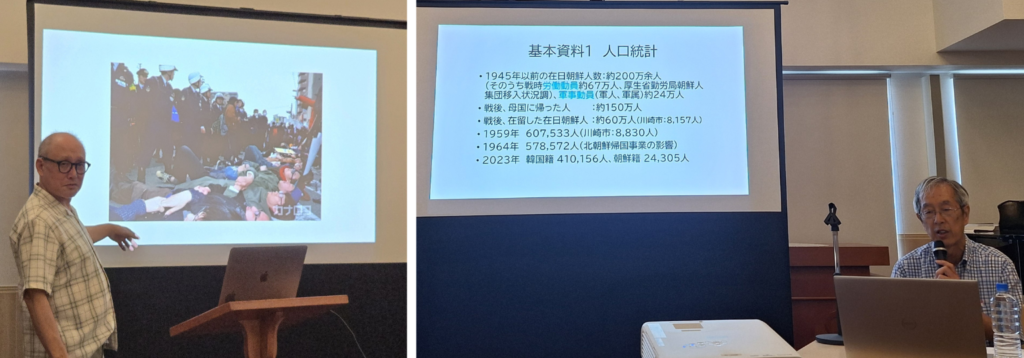 참가자들은 둘째 날 가와사키 사쿠라모토 지역을 방문해 재일대한기독교회 가와사키 교회와 사회복지법인 세이큐사를 중심으로 재일한국인 공동체가 차별과 혐오에 맞서 싸워온 과정을 직접 들었다. 일제 강점기 이후 외국인으로 지위가 바뀌며 법적 권리를 박탈당한 재일한국인들은 취업에 대한 차별과 사회보장에서 배제되었고, 조선인이라는 정체성을 숨긴 채 살아야 했다. 이에 사쿠라모토의 지역 공동체는 행정 차별 철폐와 정체성 보존을 위한 ‘생활권 운동’을 전개하며 유치원과 청소년 시설을 운영하는 등 지역 복지의 근간을 세워왔다.