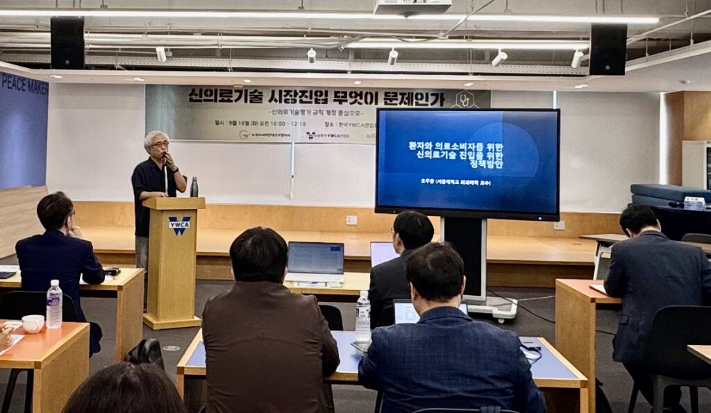 한국YWCA연합회(회장 조은영)은 GCN녹색소비자연대, 의료공동행동과 공동주최로 2025년 9월 16일(화) 오전 서울 중구 한국YWCA연합회에서 ‘신의료기술 시장 진입의 문제 개선을 위한 토론회_ 신의료기술평가 규칙 개정 중심으로’ 를 개최했다.
