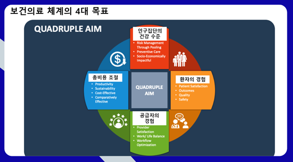 박 원장은 보건의료 체계가 달성해야 할 네 가지 목표도 제시했습니다. 국민의 건강 수준과 건강 수명을 높이는 것, 환자의 경험을 개선하는 것, 의료진의 직무 만족을 보장하는 것, 총 의료비 지출을 감당 가능한 수준으로 관리하는 것입니다. 그는 “이 네 가지를 동시에 달성하는 것은 쉽지 않지만, 앞으로 반드시 해내야 할 과제”라고 강조했습니다.