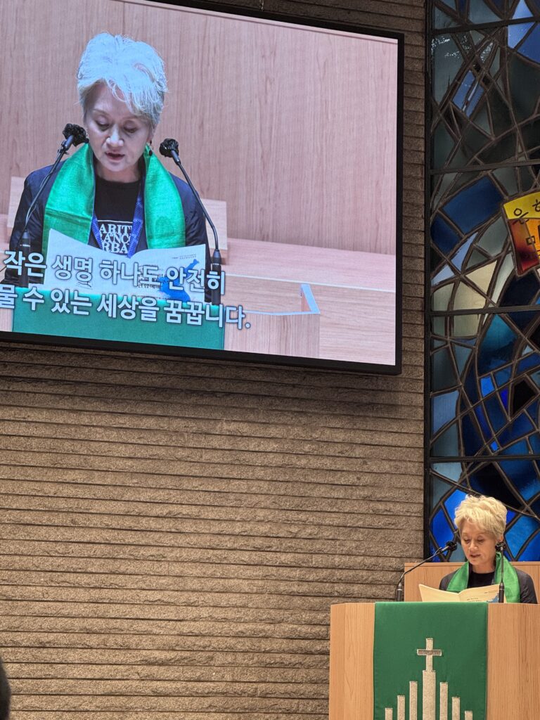WCC 총무 제리 필레이 목사는 ‘평화를 이루는 사람은 복이 있나니’라는 제목으로 말씀을 선포하였다. “진정한 평화는 대화를 통해 서로를 발견하고 이해할 때만 이루어질 수 있다. 그리스도인들은 ‘평화 만들기’가 교회의 선교적 메시지임을 알고 시대적 상황은 절박하게 이를 요구하고 있다. 힘없는 지푸라기가 태풍을 만나 시멘트 벽을 뚫듯, 올 수 없을 것만 같은 평화와 통일의 긴 여정을 포기하지 않는다면 우리의 연약함도 성령의 힘을 만나 해낼 수 있다. 우리는 평화를 이루고 평화를 위해 일할 때에야 비로소 복을 받는 자가 된다. 하나님께서 원하시는 평화를 일구기 위해 한국교회는 분열된 사람들을 함께 모으고 대화하게 하며 소망과 평화로 가득한 미래를 함께 나누는 일에 앞장서야 한다”로 강조했다.