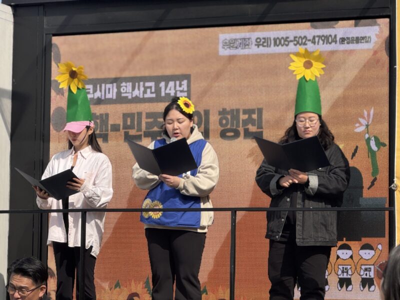 오늘 우리는 14년 전 후쿠시마 핵사고를 기리고, 핵발전의 무도함에서 벗어나 민주주의 회복과 탈핵 세상으로 나아가기를 희망하며 이 자리에 섰다.