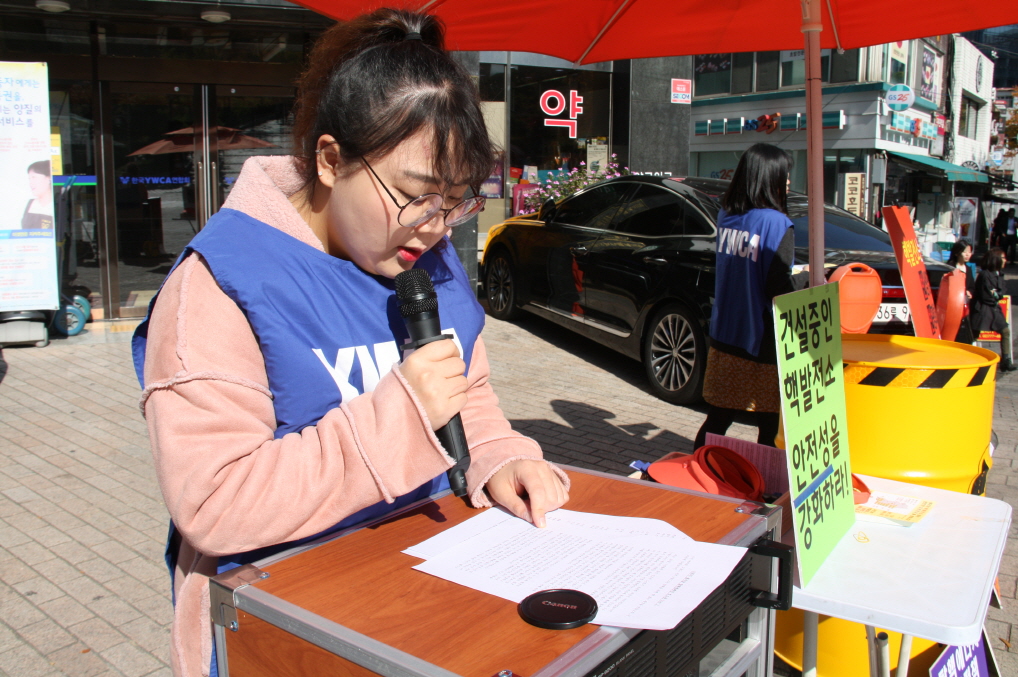 내 용: 1. 공론화위원회 시민참여단 결정 존중 2. 노후원전 수명연장 금지하고, 조기 폐쇄하라! 3. 건설중인 핵발전소 안전성을 강화하라! 탈핵사진1 탈핵사진2 탈핵사진3 탈핵사진4 탈핵사진5