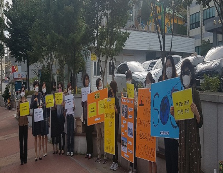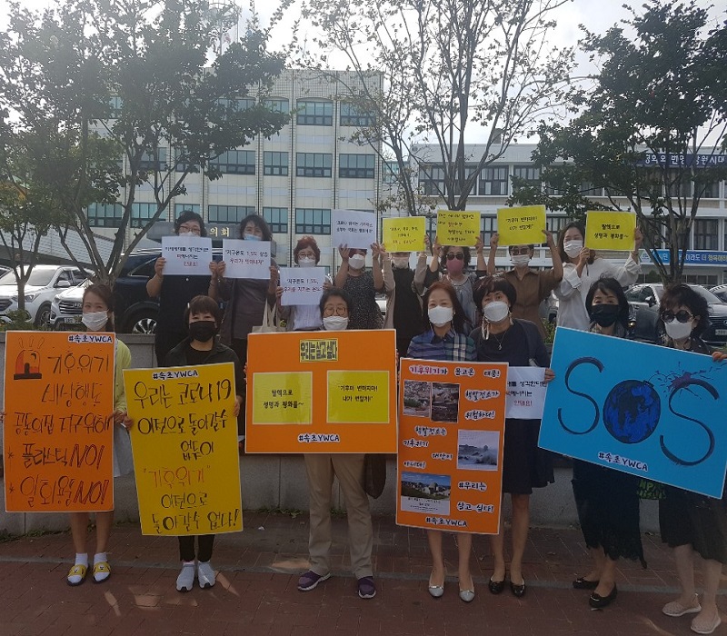 속초Y는 이 날 활동가와 이사 등 약 15명이 속초시청 앞에서 지나가는 시민들에게 기후위기의 심각성과 핵발전의 위험에 대해 알리는 캠페인을 벌였습니다. 이 날은 호소문 없이 침묵 시위로 진행되었습니다.