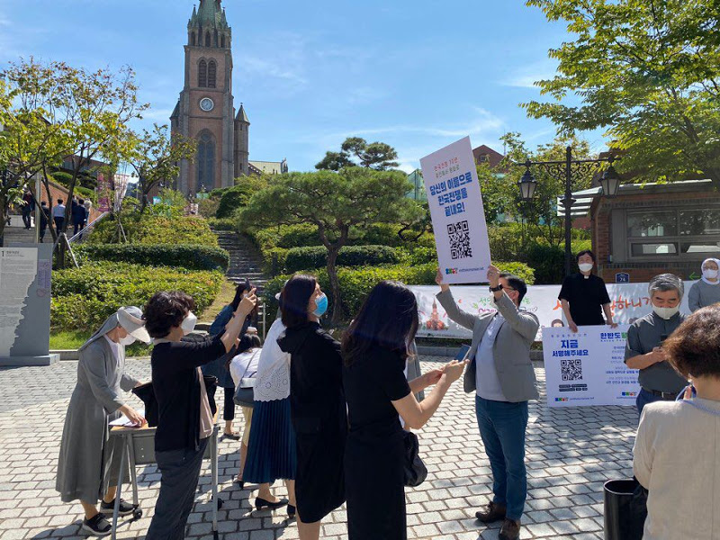 더불어 집중행동 주간 캠페인은 캠페인 명예대표를 맡고 있는 7대 종단 수장단의 영상 7대 종단 하나 되어 서명 동참 호소!를 공개하여 “Korea Peace Appeal에 함께 서명하고 한국전쟁을 끝내자”고 호소했다. 특히 종교인들은 지난 9월 21일(월)부터 25(금)까지 각 종교의 상징적인 장소인 명동성당 들머리 입구, 한국기독교회관 정문 앞, 원불교소태산기념관 정문 앞, 천도교 중앙대교당 수운회관 앞에서 릴레이 1인 시위와 서명운동도 이어갔다. QR코드를 이용한 서명에 많은 시민들이 줄지어 참여하는 모습을 볼 수 있었다.