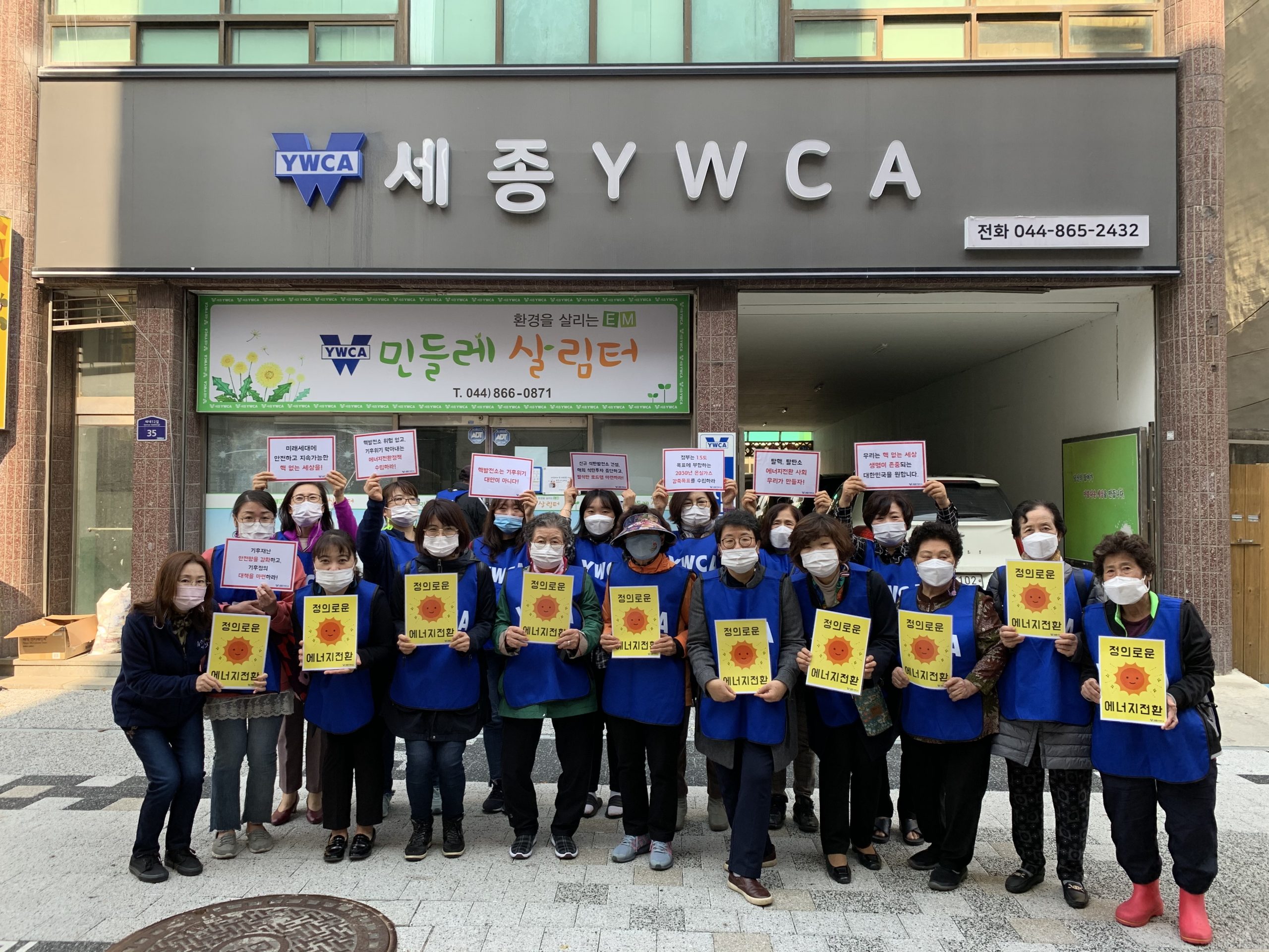 10월 찾아가는 탈핵 불의날 캠페인은, 세종Y가 주관하였습니다.. 18명의 자원활동가와 실무활동가 회원들이 세종YWCA 회관 주변 상가 거리를 행진하며, 닥쳐온 기후위기의 현실과 기후위기에 취약하고 위험하기 그지없는 핵발전소의 안전 문제에 대해 알리고 하후빨리 기후위기 대책을 수립하도록 촉구하였습니다.