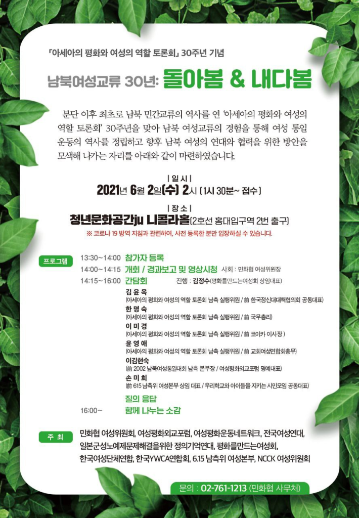 <아세아의 평화와 여성의 역할 토론회 30주년 기념 >