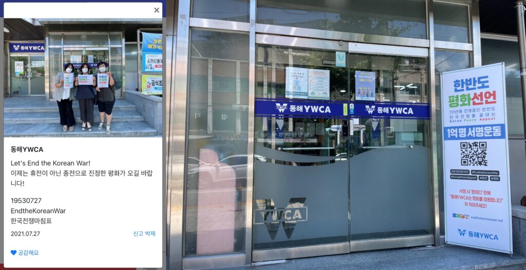 [캠페인] 한국전쟁 쉼표에서, 마침표로? YWCA 회원 인증샷 모음 2021.07.26