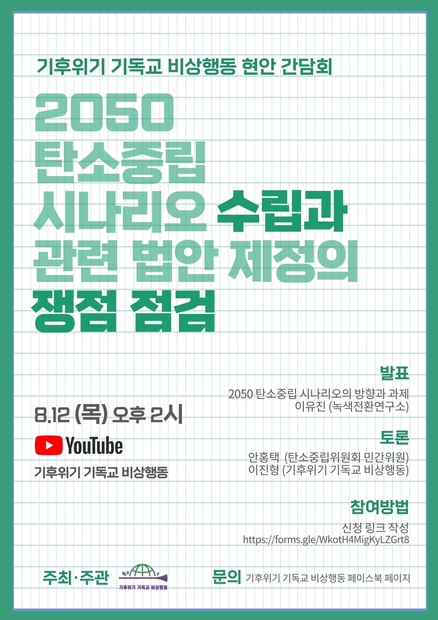 2) 토론 : 안홍택 (탄소중립위원회 민간위원), 이진형 (기후위기 기독교 비상행동)