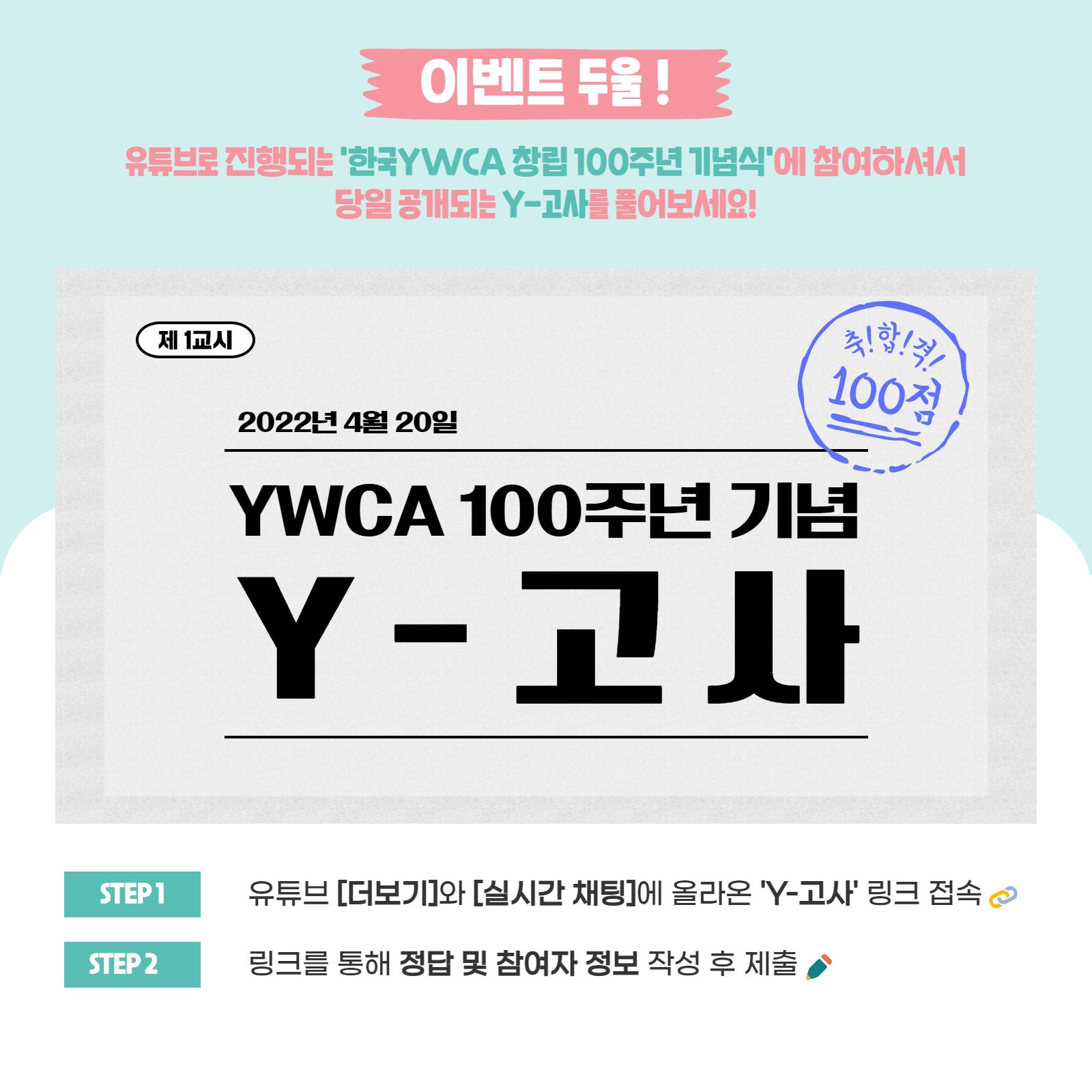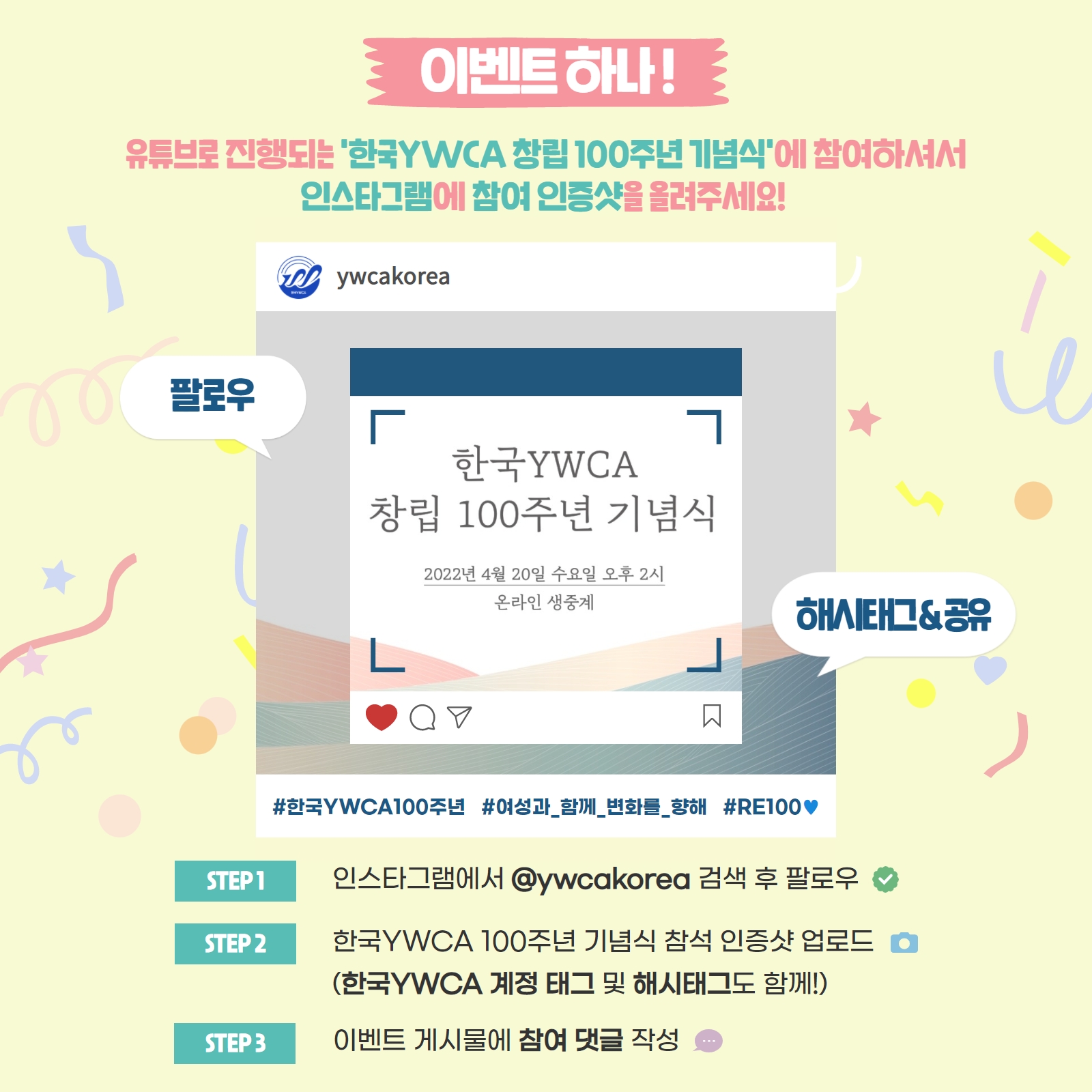◉ 문의 : 한국YWCA연합회 100주년 준비위원회 (koreaywca@ywca.or.kr)