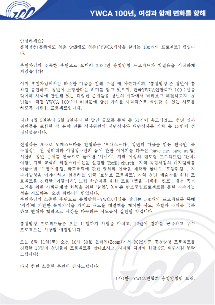 YWCA 채널 추가 일주일 간 표시하지 않기