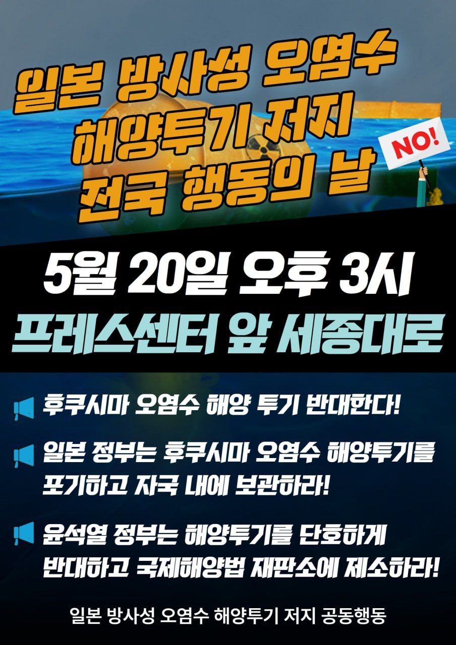 – 오후 3시 : 일본 방사성 오염수 해앙투기 저지 전국 행동의 날 (집회 및 행진)