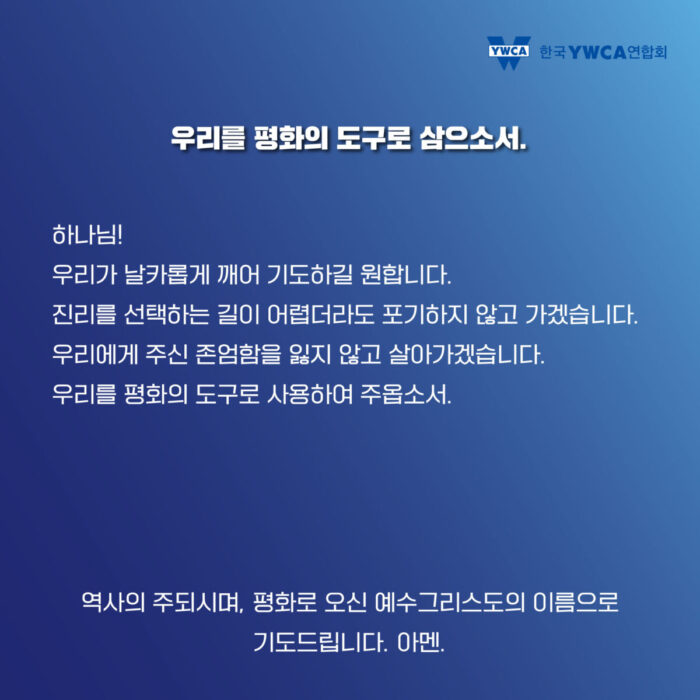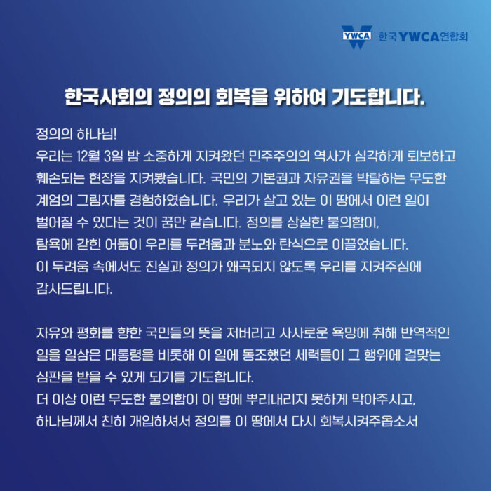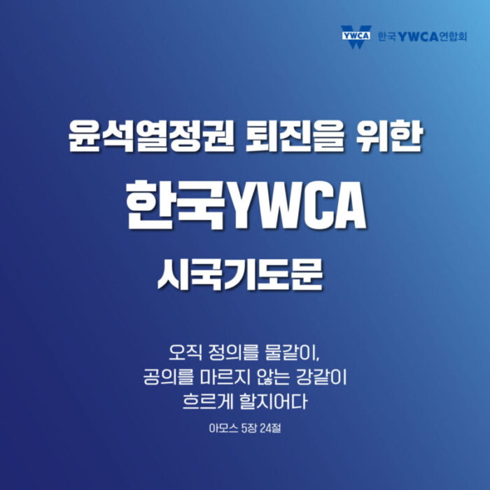 한국YWCA는 윤석열 정권 퇴진을 위한 시국기도를 진행합니다.