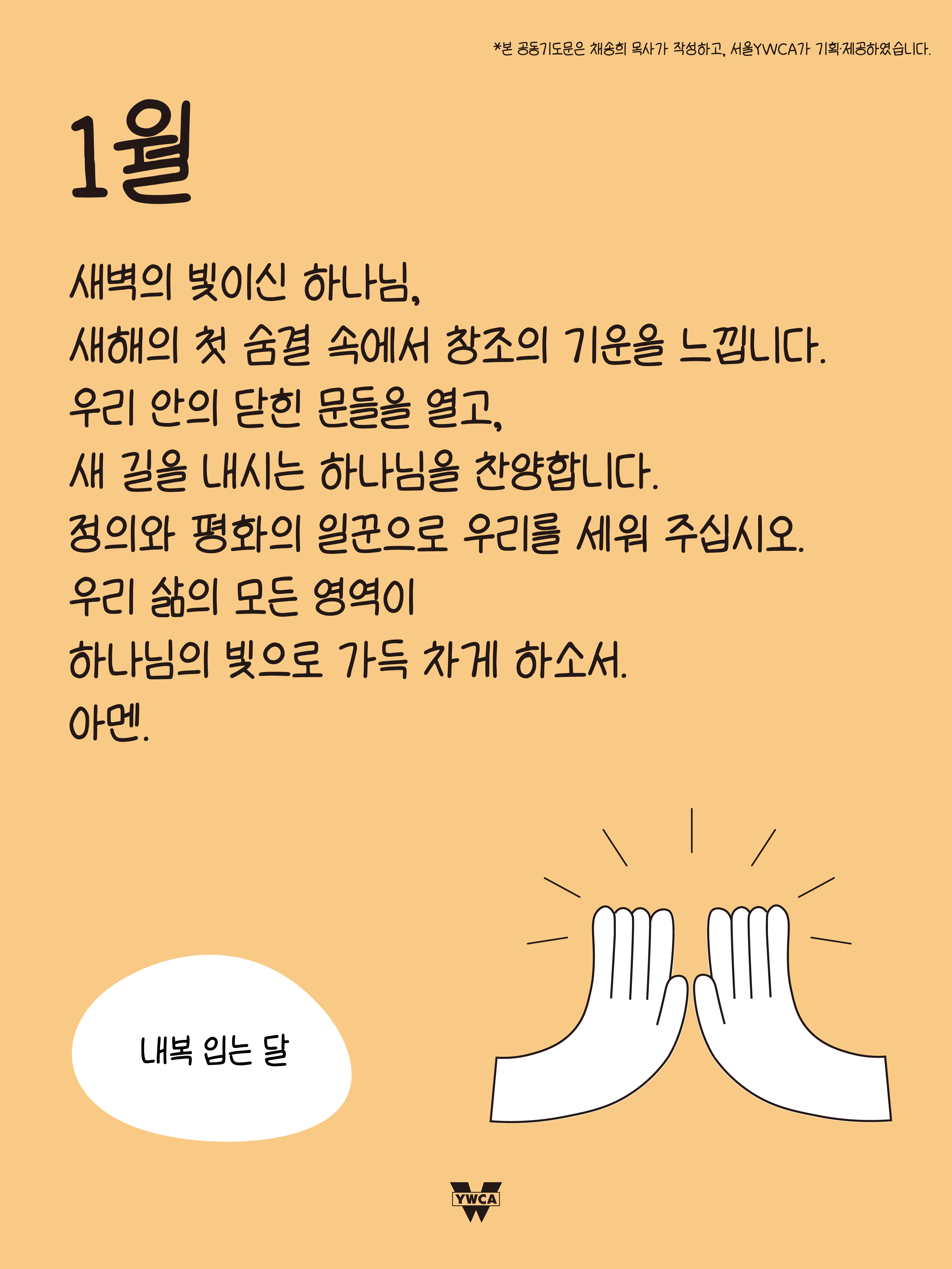 그 출발점으로, 전국이 한 마음으로 드리는 「2026 YWCA 전국공동기도」를 매달 나눕니다.