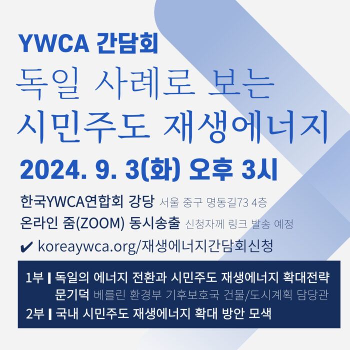 ✔️신청 : koreaywca.org/재생에너지간담회신청