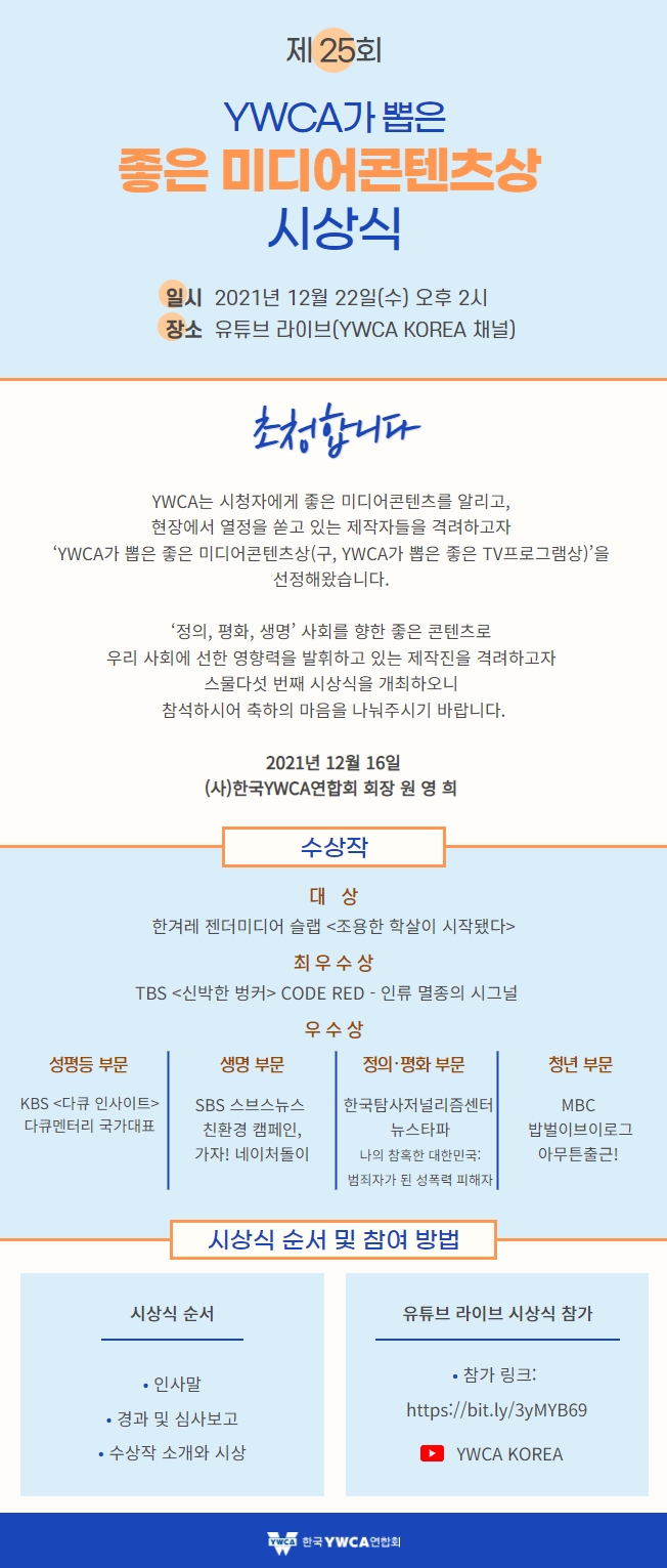 제 25회 YWCA가 뽑은 좋은미디어콘텐츠상 시상식 2021.12.17
