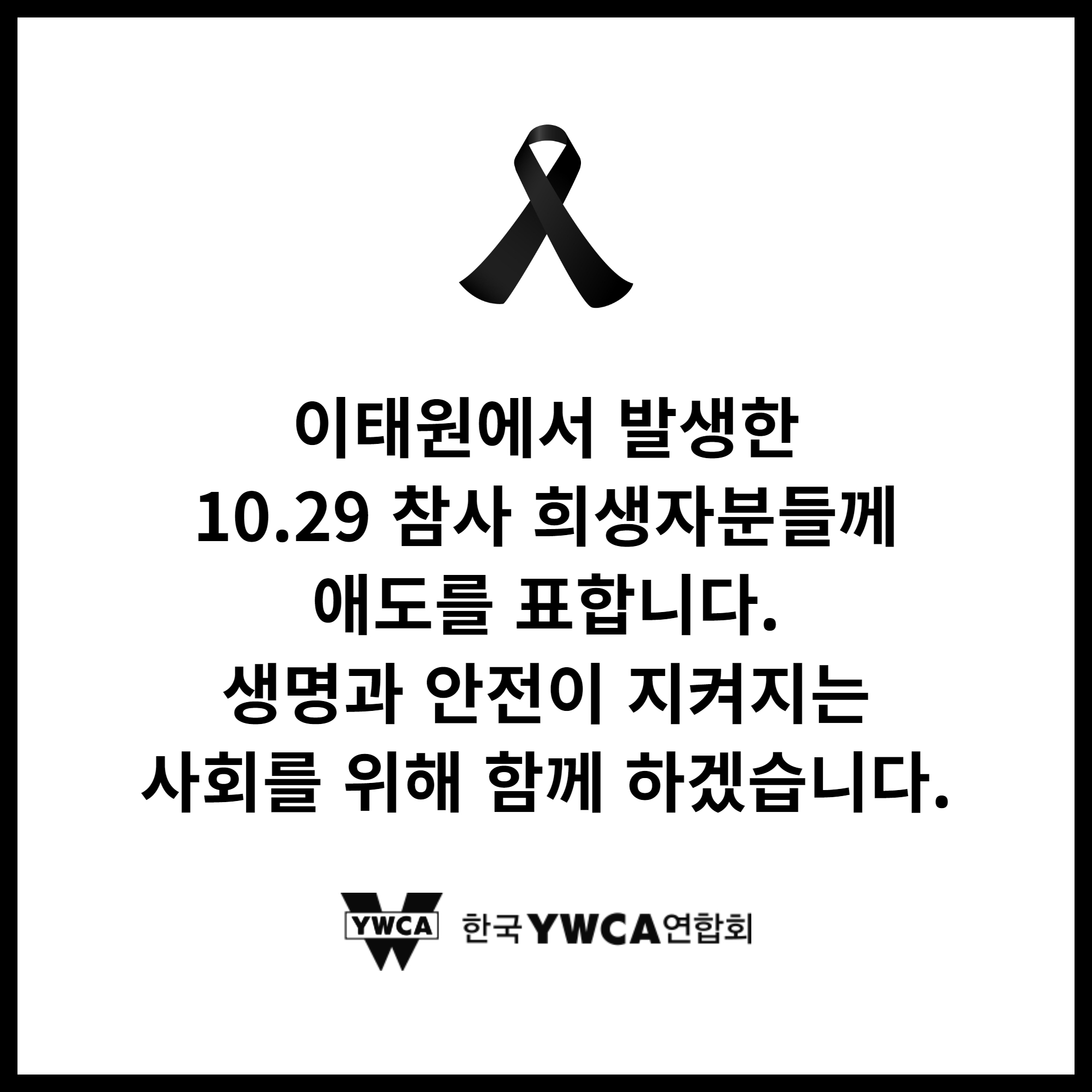 이러한 이유로 한국YWCA는 ‘이태원 참사’를 ‘10.29 참사’로 부르고자 합니다.
