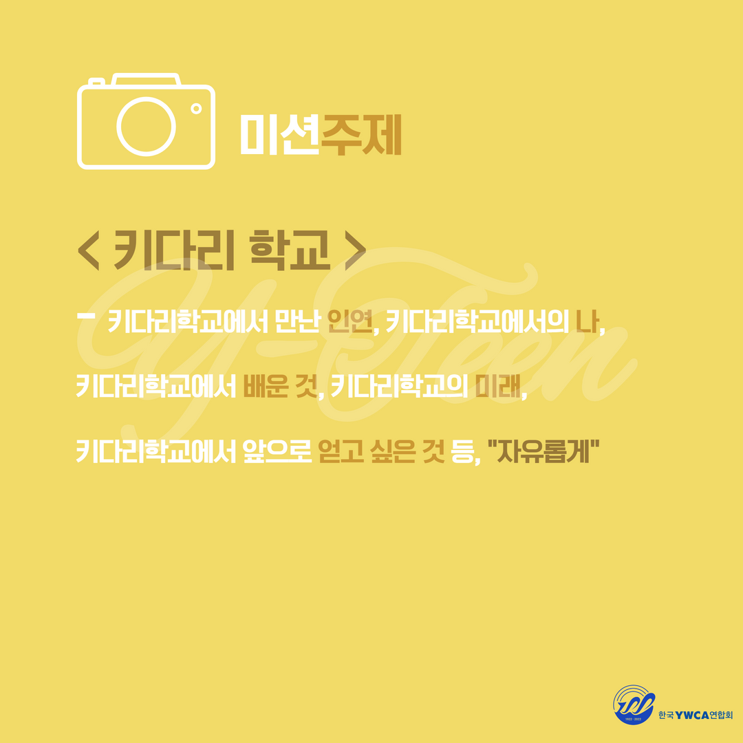 – 세부주제 : 키다리학교에서 만난 인연, 키다리학교에서의 나, 키다리학교에서 배운 것, 키다리학교에서 앞으로 얻고 싶은 것 등