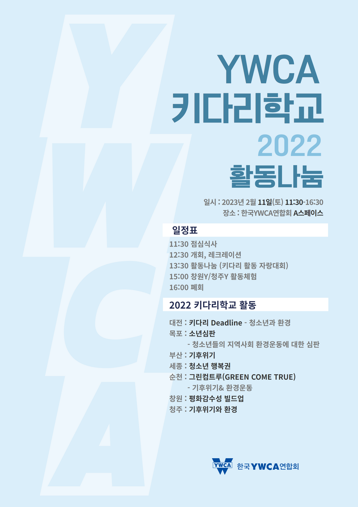 2) 장소 : 한국YWCA연합회(서울특별시 중구 명동길 73) 4층, A스페이스