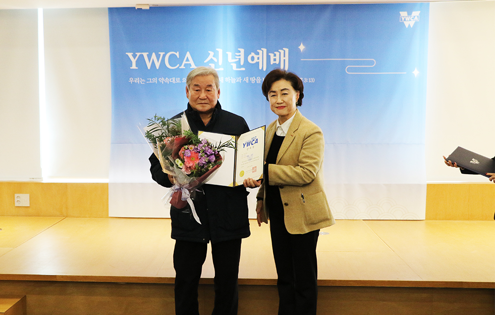 신년예배는 1부 예배와 2부 신년하례식으로 진행됐다. 특히 2부 신년하례식에는 활동가 봉사상·근속상 시상이 있었다. 박은실 국장과 김수연 팀장, 박효정 팀장(이상 연합회 기획조정국), 김영대 주간보호센터 관리인, 정원권 실버비지니스 실장(이상 YWCA 은학의집) 등이 근속상을 수상했다.