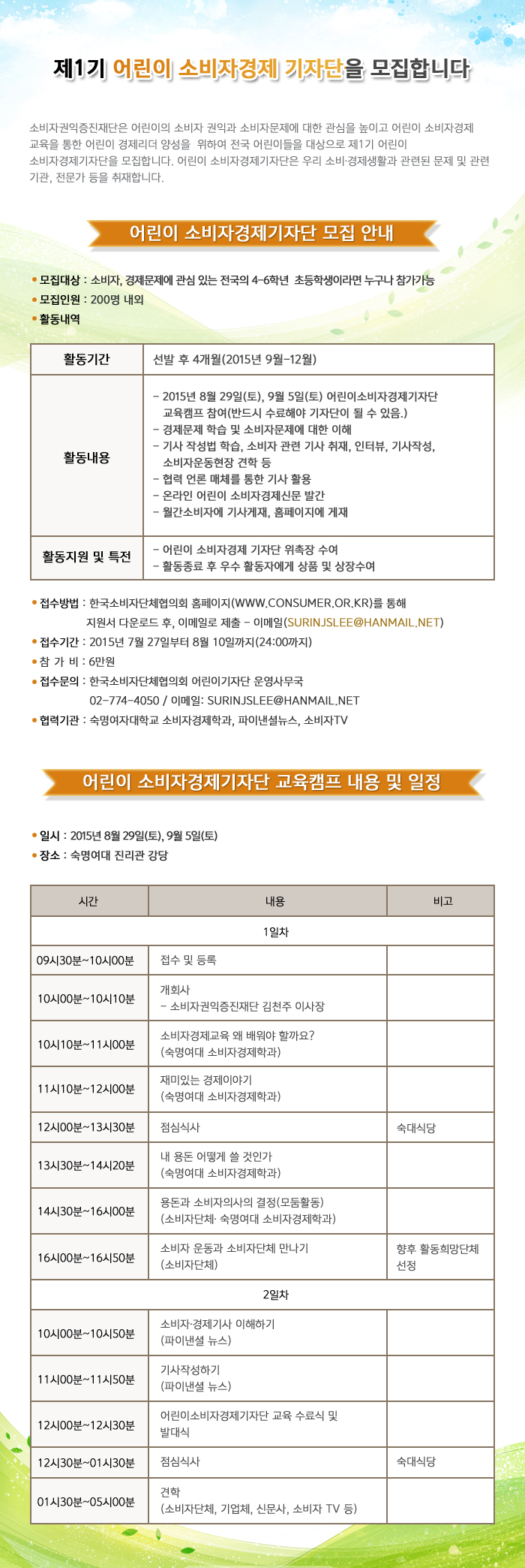 제1기 어린이 소비자경제 기자단을 모집합니다.