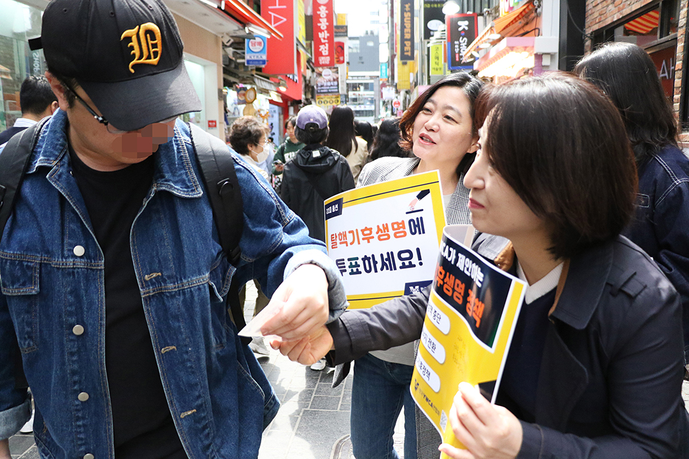 이날 캠페인은 시민들의 4.10 투표 참여를 독려하고, 한국YWCA 정책 의제 또한 시민들에게 알리기 위해 마련됐다.