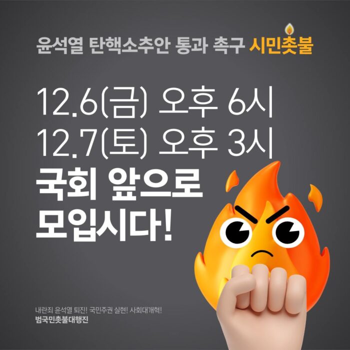 ?12/6, 12/7 윤석열 탄핵소추안 통과 촉구 시민촛불?