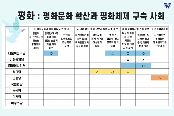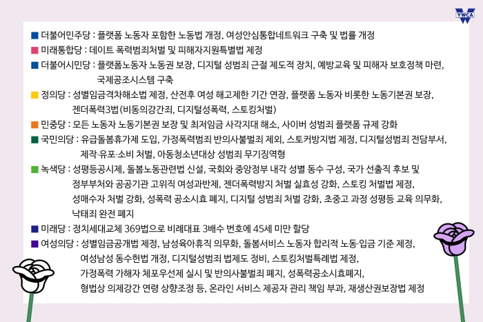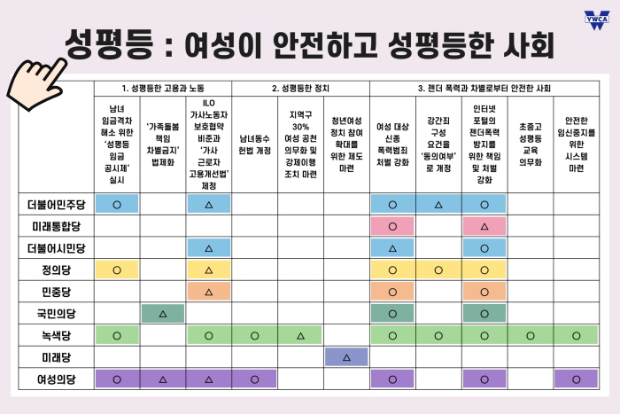 YWCA 정책의제와 정당 정책 비교하기 2020.04.09