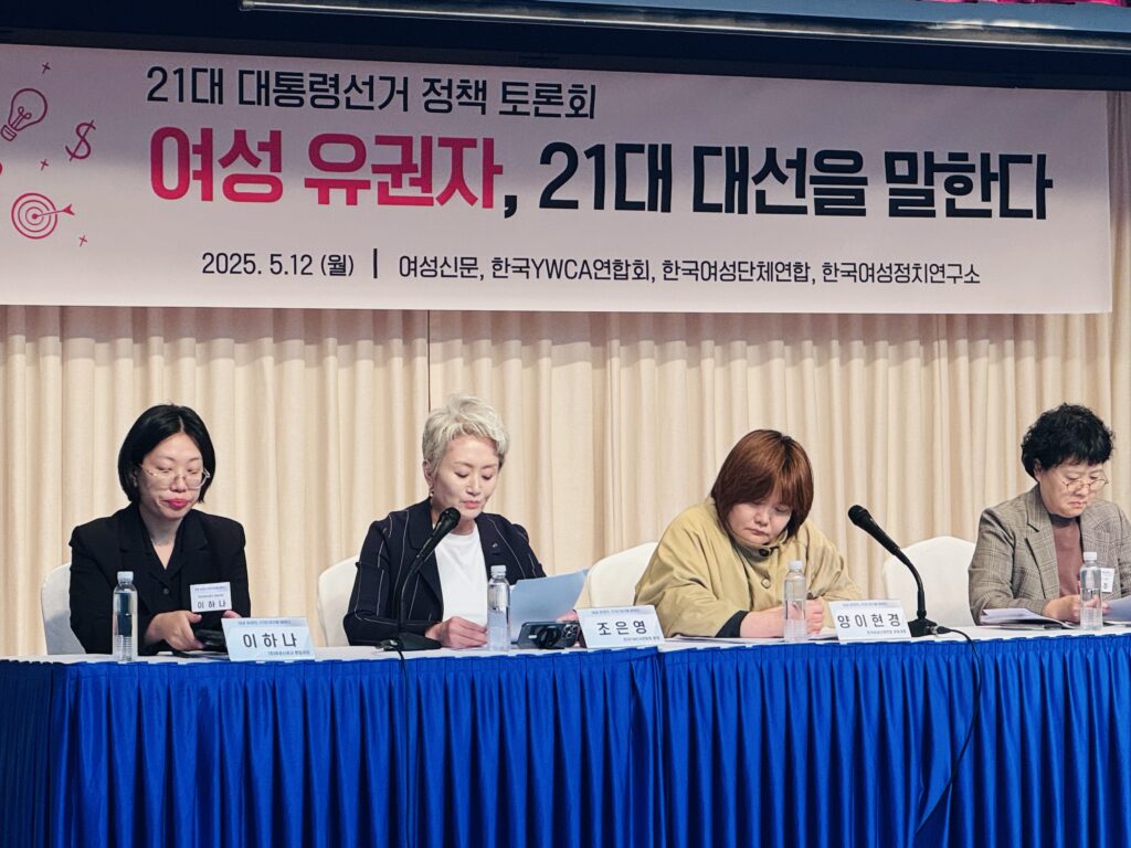 21대 조기 대선을 맞이하여 여성신문, 한국YWCA연합회, 여성단체연합, 여성정치연구소가 공동주최하고 여성재단이 후원하는 <여성 유권자, 21대 대선을 말한다> 토론회가 5월 12일(월) 오후2시 서울YWCA 강당에서 열렸다.