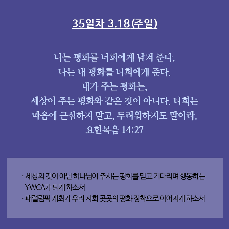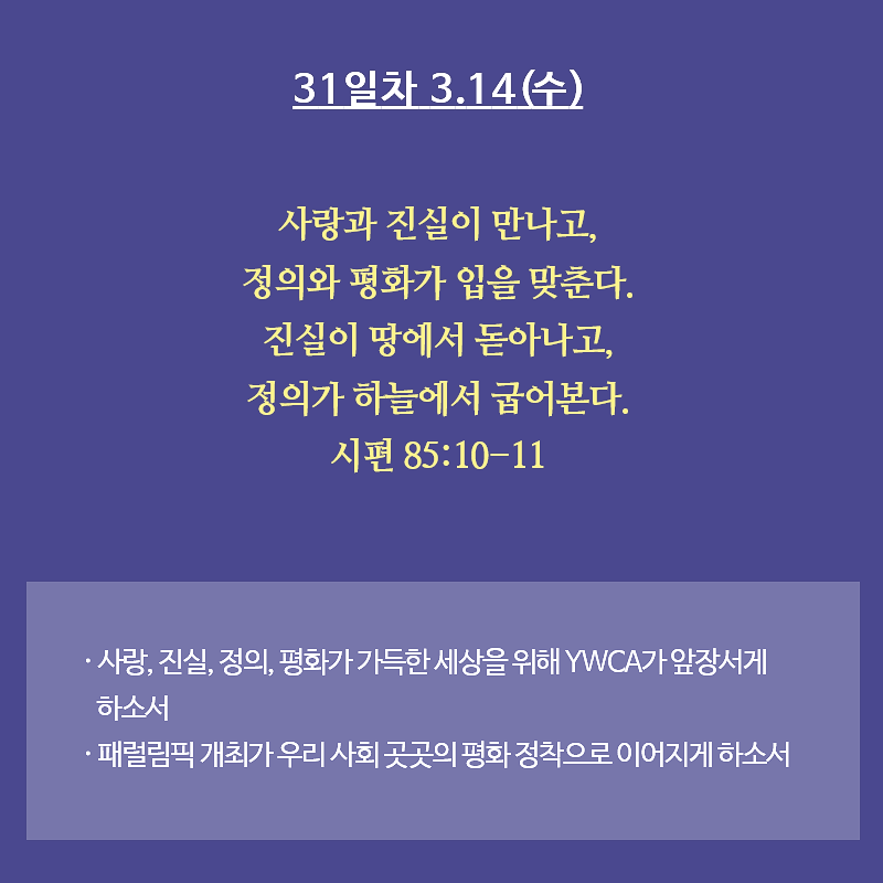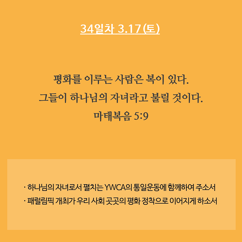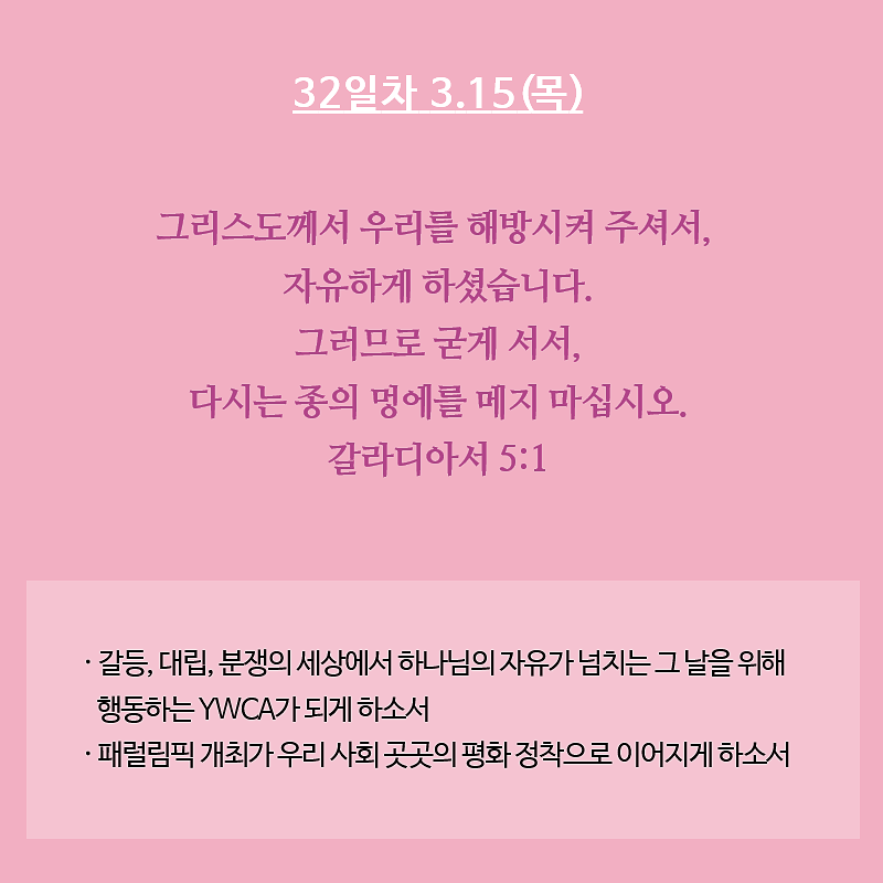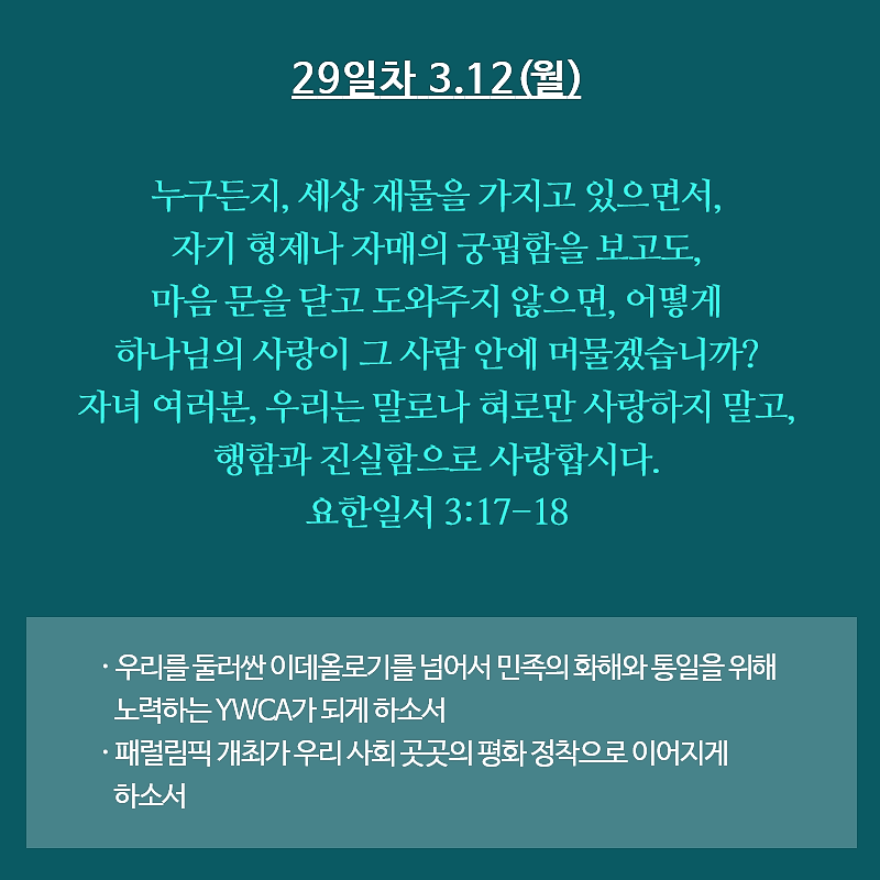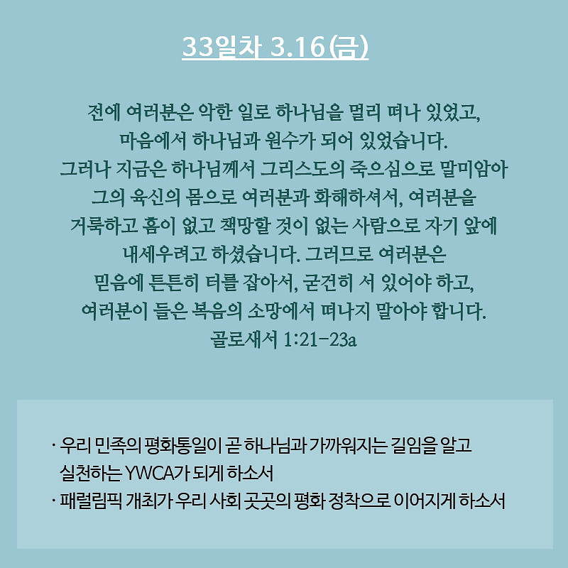 평화통일을 염원하는 YWCA 35일 기도운동 5주차 2018.03.13