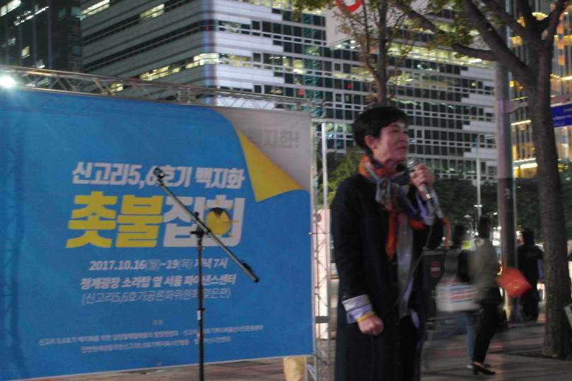 10월 16일(월)부터 19일(목)까지 오후 7시마다 청계광장 소라탑 옆 서울파이낸스센터(신고리 5·6호기 공론화위원회 맞은편)에서 열리는 촛불집회에 함께해주세요!