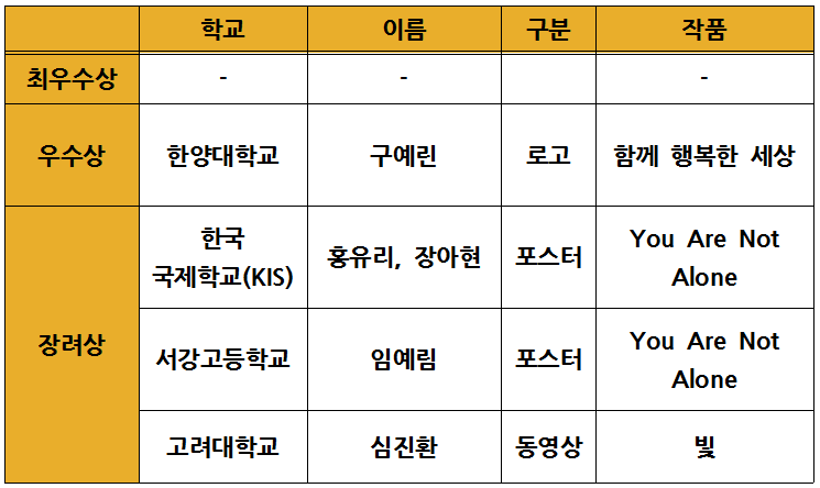 한국YWCA연합회 95주년 기념 후원콘서트 청소년 디자인공모전 수상작 발표 한국YWCA연합회 95주년 기념 후원콘서트 청소년 디자인공모전에 참여해주신 모든 분들께 감사드리며 다음과 같이 수상작을 발표합니다.