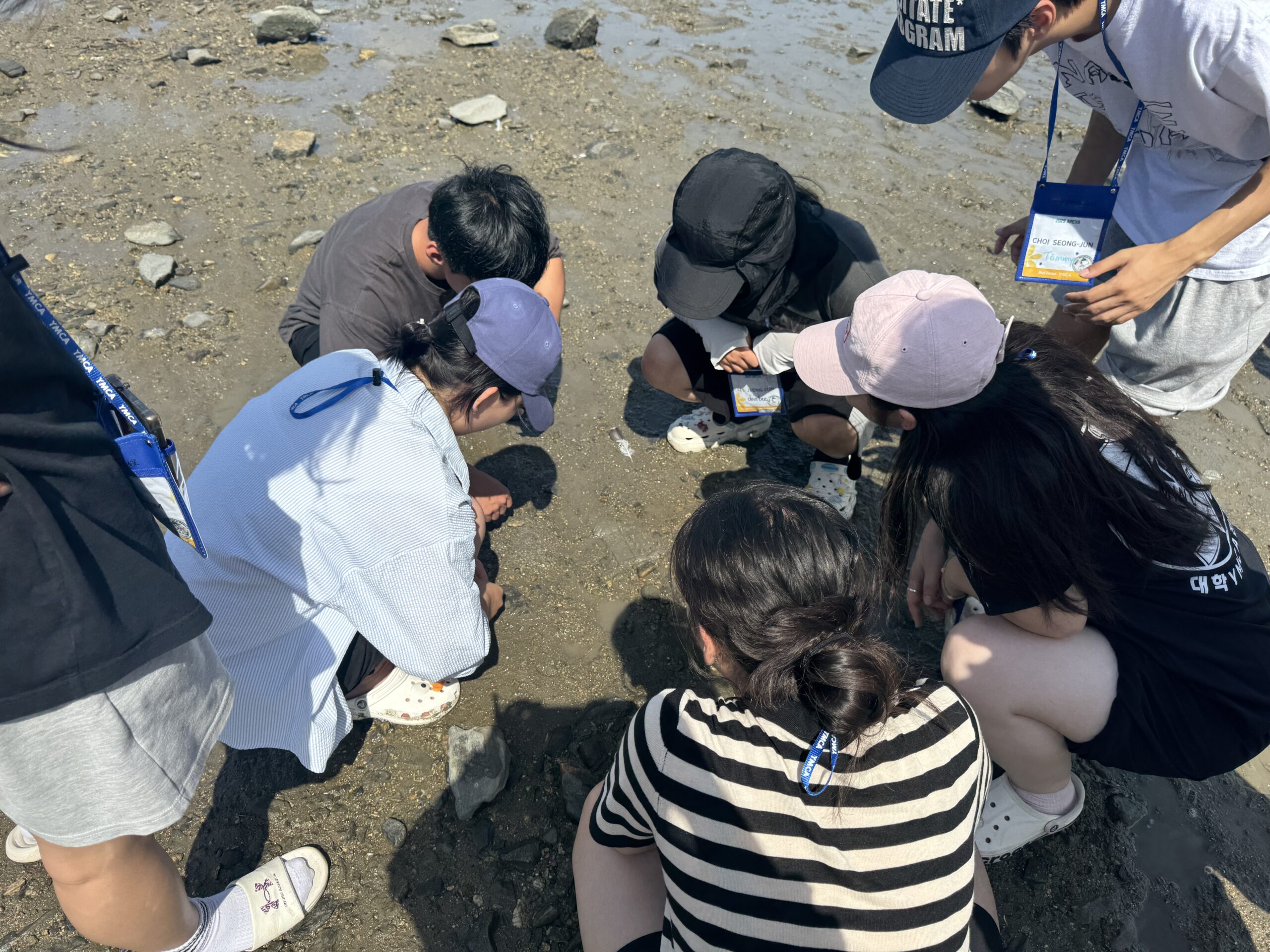 강화갯벌 생물들을 관찰하고 있는 청년들