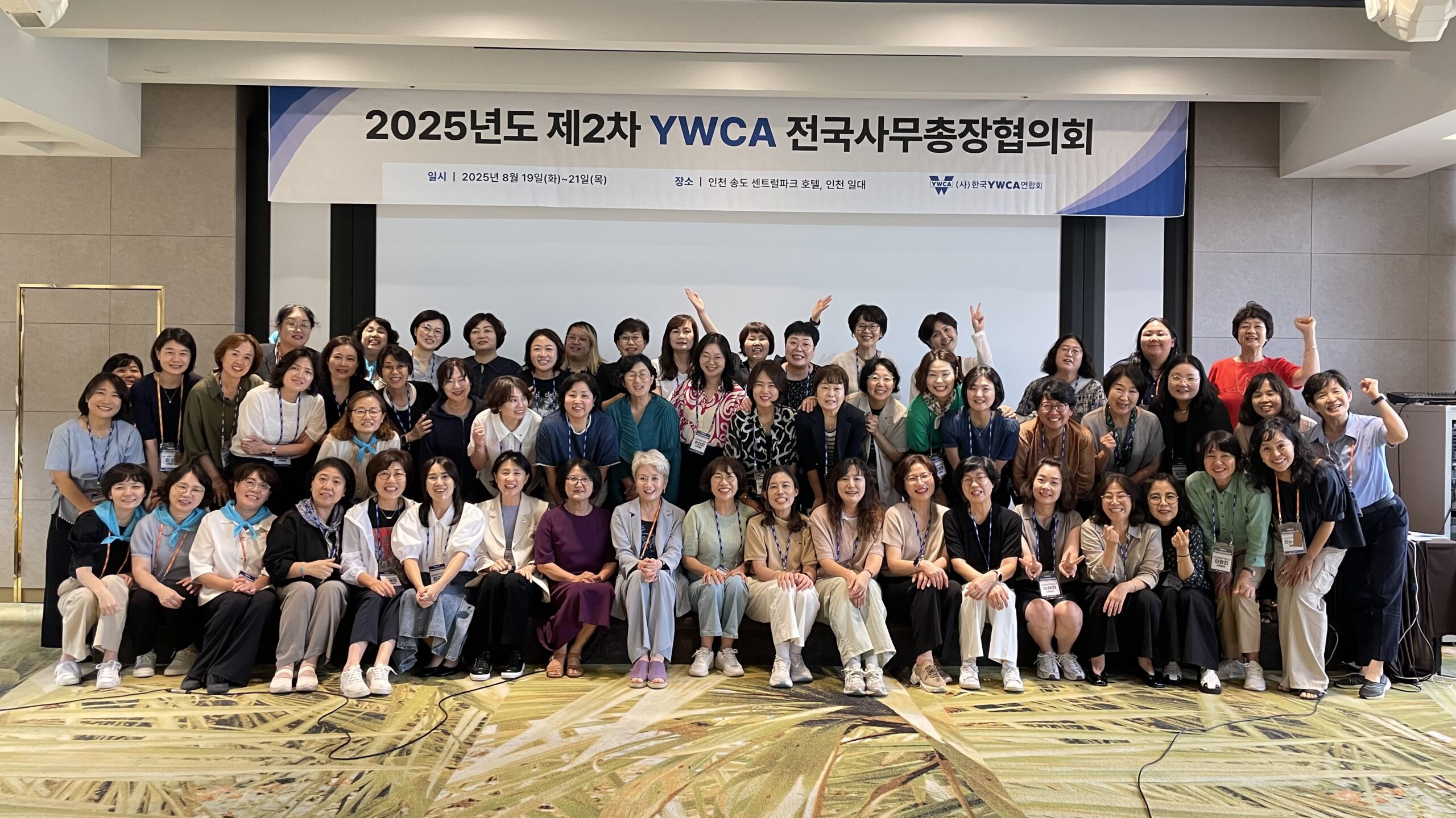 2025년 제2차 YWCA 전국사무총장협의회를 8월 19일(화)~21(목)까지 2박 3일동안 연합회 주최, 경인강원권역 주관으로 인천 송도 센트럴파크호텔과 인천일대에서 진행했다. 49개 (사)회원YWCA 사무총장과 (사)한국YWCA연합회 박은실 사무총장 등 총 50명이 참석하였고, (사)한국YWCA연합회 조은영 회장, 김은경 제1부회장, (사)인천YWCA 표신희 회장, 연합회 실무활동가들이 참관하여 총 66명이 참석하였다.