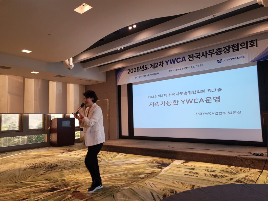 워크숍은 ‘지속가능한 YWCA의 운영’을 주제로 박은실 사무총장이 진행하였는데, 지난 3월부터 6월까지 진행했던 회원YWCA 사무총장 연차별 역량강화교육부터 이어진 지속가능한 YWCA의 운영의 고민을 동역자들에게 함께 토로하고 위로받고 해결책을 나누며 뜨겁게 연대하는 시간을 가졌다.