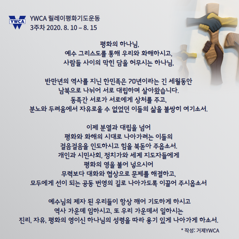 YWCA 릴레이평화기도운동 3주차 2020.08.10