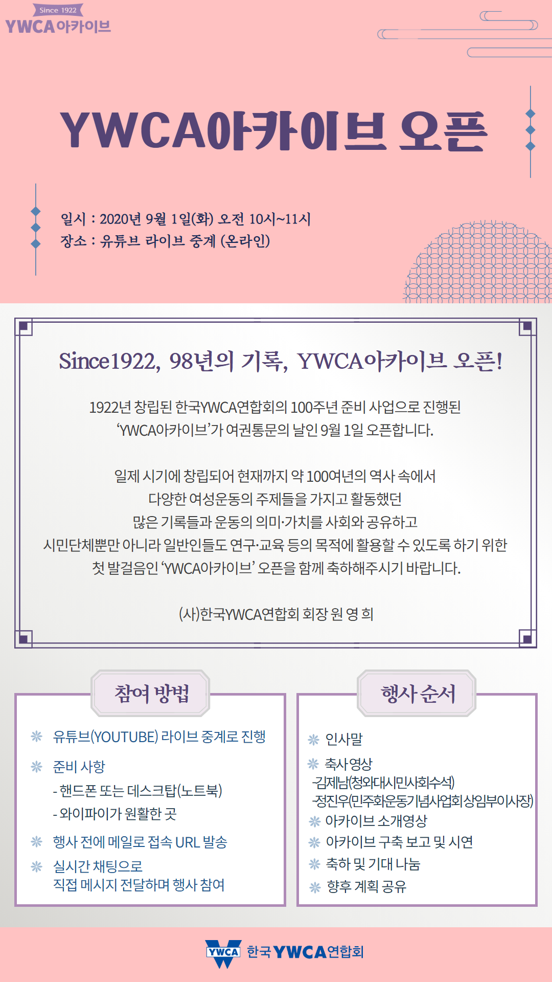 YWCA 아카이브 오픈식 초대의 글