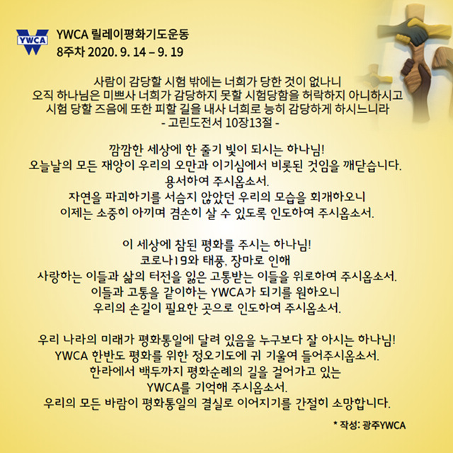 * 이번 주간 기도는 광주YWCA가 작성해주셨습니다.