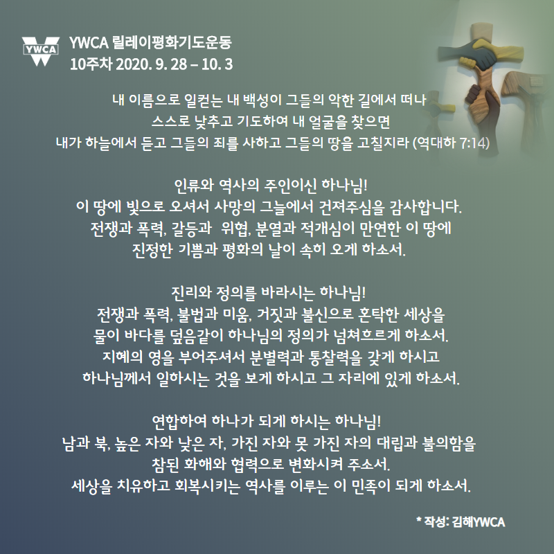 * 이번 주간 기도는 김해YWCA가 작성해주셨습니다.