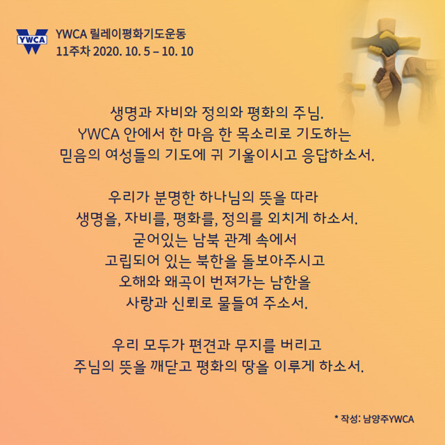 * 이번 주간 기도는 남양주YWCA가 작성해주셨습니다.