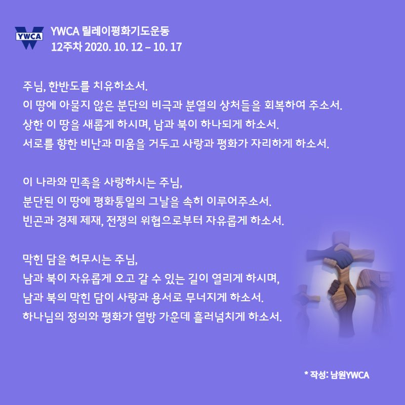 * 이번 주간 기도는 남원YWCA가 작성해주셨습니다.