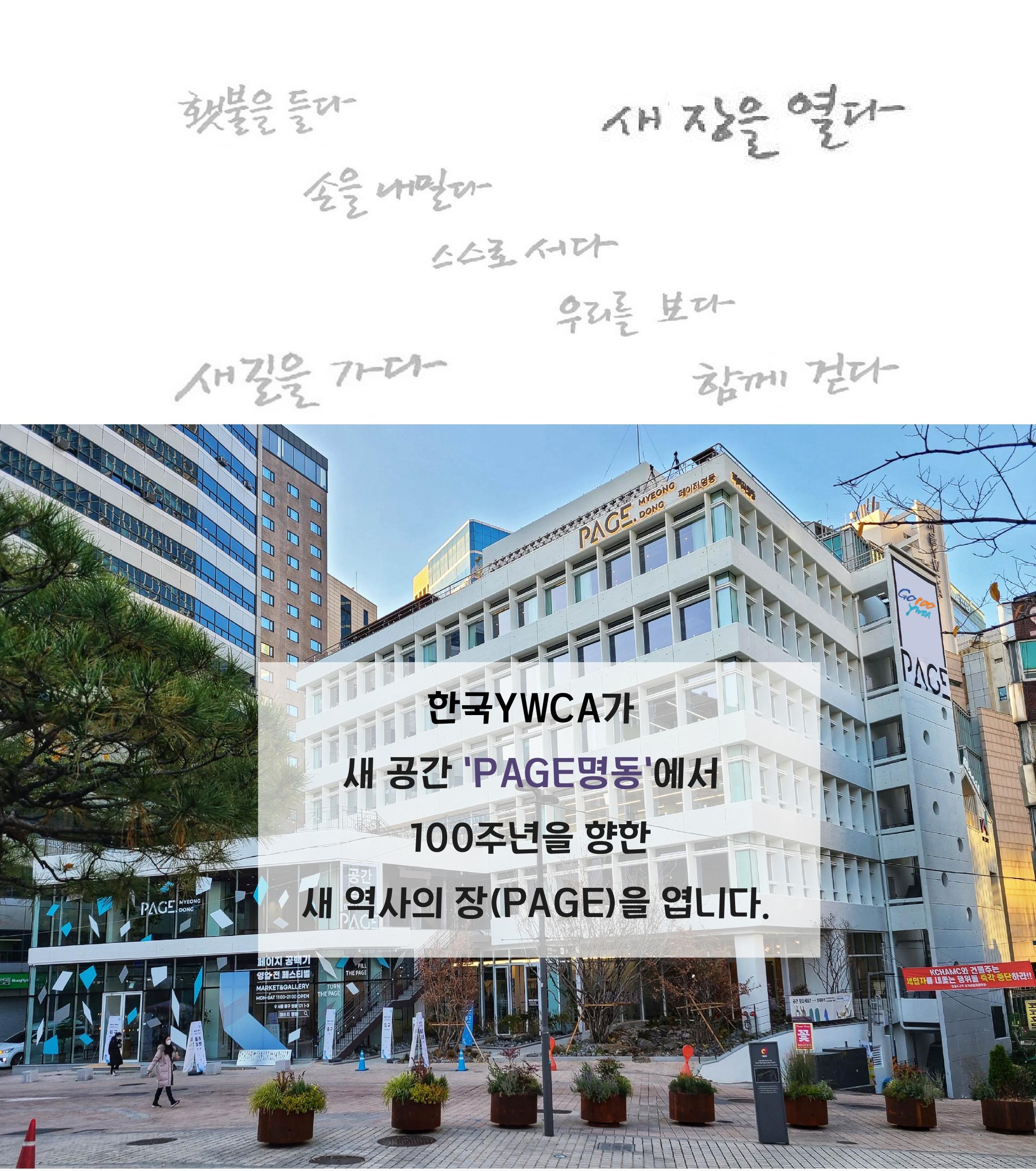 한국YWCA는 2022년 창립 100주년을 준비하며 새 공간 PAGE명동에서 100주년을 향한 새 역사의 장(PAGE)를 열었습니다.