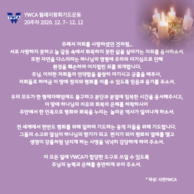 * 이번 주간 기도는 사천YWCA가 작성해주셨습니다.