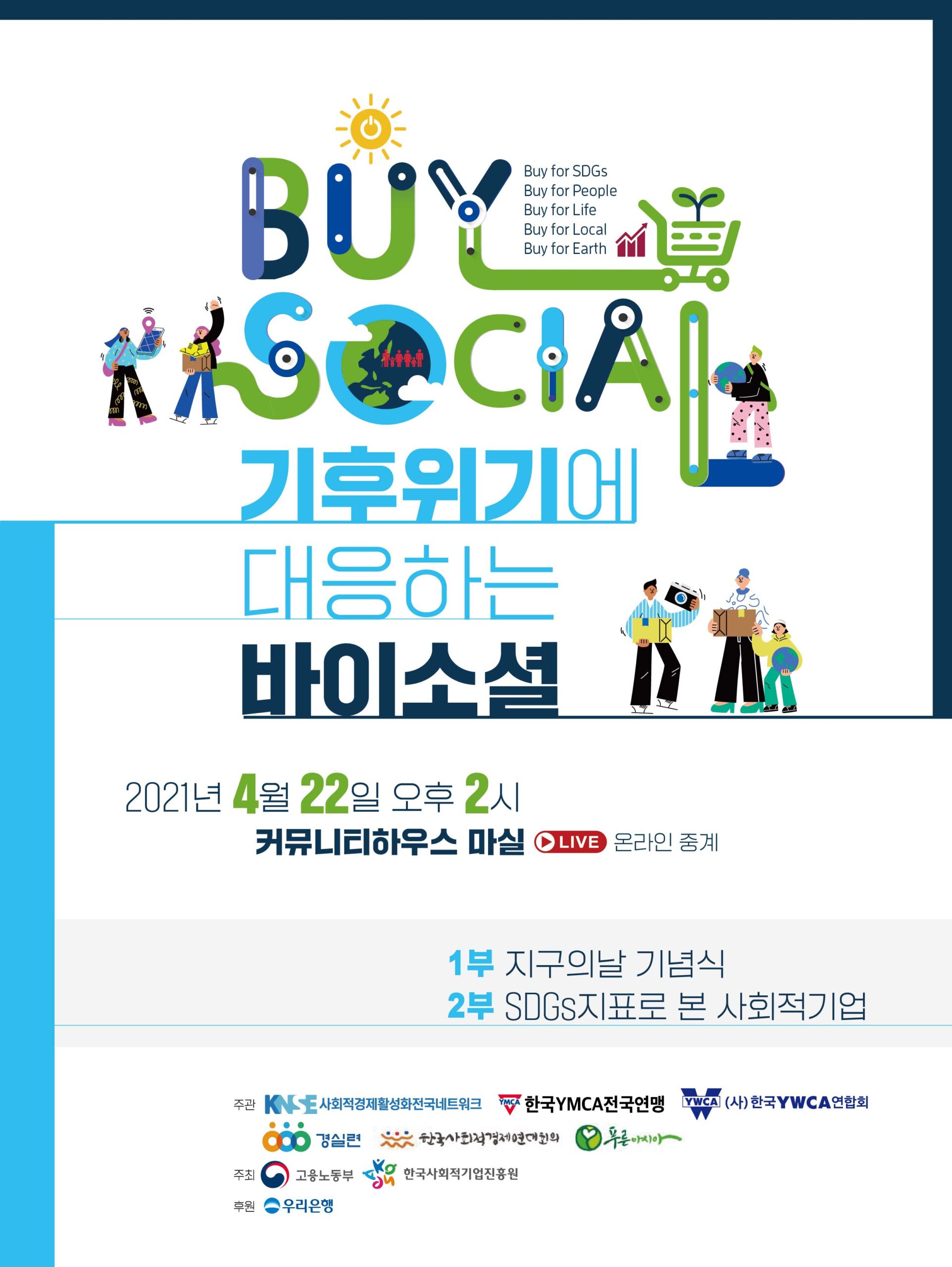 이번 행사는 바이소셜(Buy Social)을 주제로 한 지구의날 기념행사로, YMCA,경실련,YWCA가 함께 하고 있는 사회적경제활성화네트워크와 사회적경제연대회의 등이 함께 합니다.