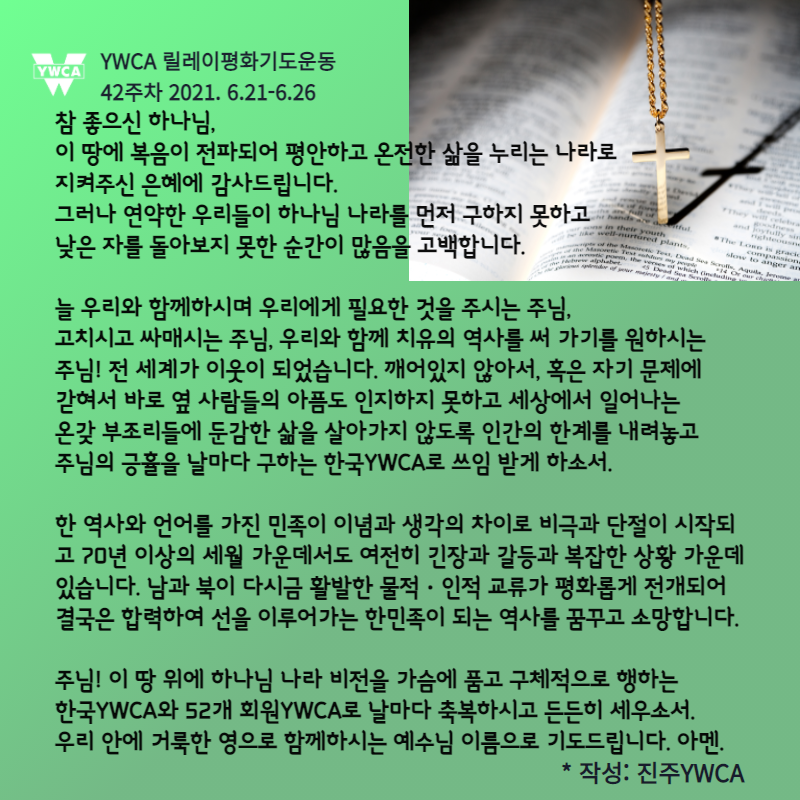 * 이번 주간 기도는 진주YWCA가 담당해주셨습니다.