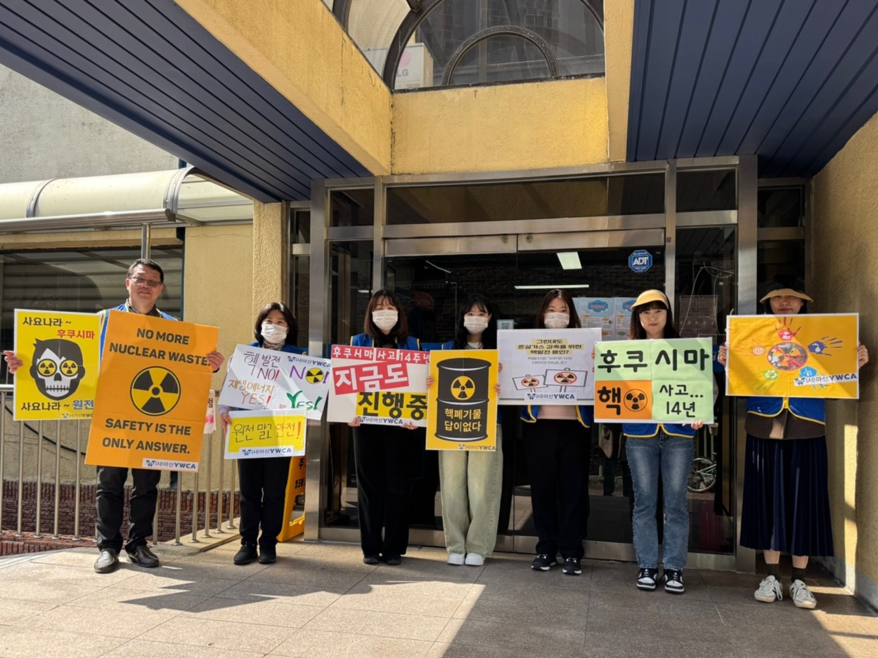 2011년 3월 11일 일어난 일본 후쿠시마 원자력발전소 참사가 발생한 14주기를 맞아 지난 3월 11일(화) 마산YWCA가 탈핵과 민주주의를 바라는 마음으로 거리 캠페인을 진행했다. 노후 핵발전소의 수명 연장과 신규핵발전소 건설을 반대하고, 후쿠시마 핵 오염수 해양투기를 중단하라는 목소리를 높였다. 또한 재생에너지를 빠른 속도로 확대하여 정의로운 에너지 전환을 꿈꾸며, 후쿠시마 핵사고와 같은 대참사를 막고 안전한 탈핵 사회로 나아가자고 외쳤다.